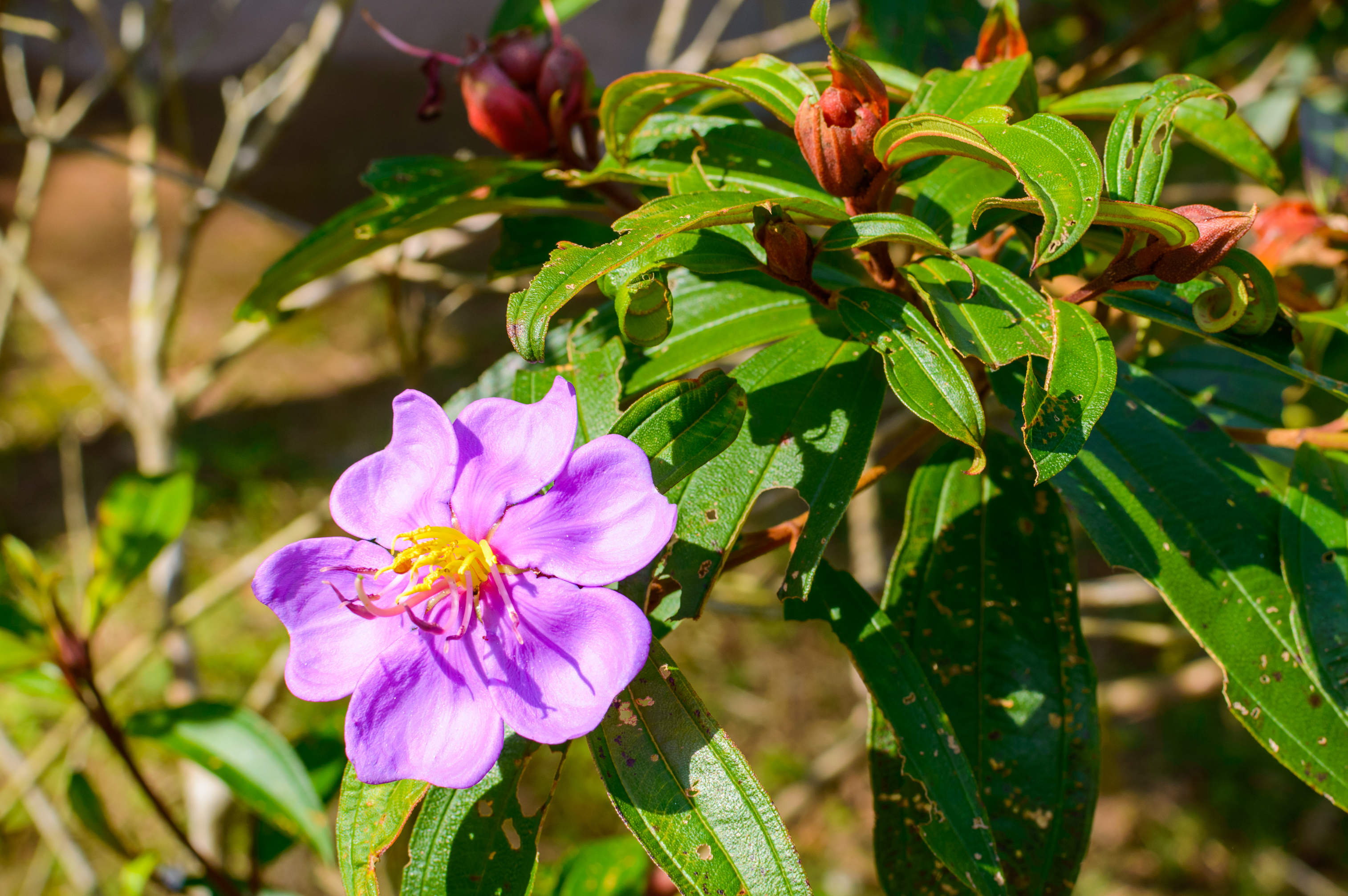фиолетовый цветок с желтой серединкой в саду
