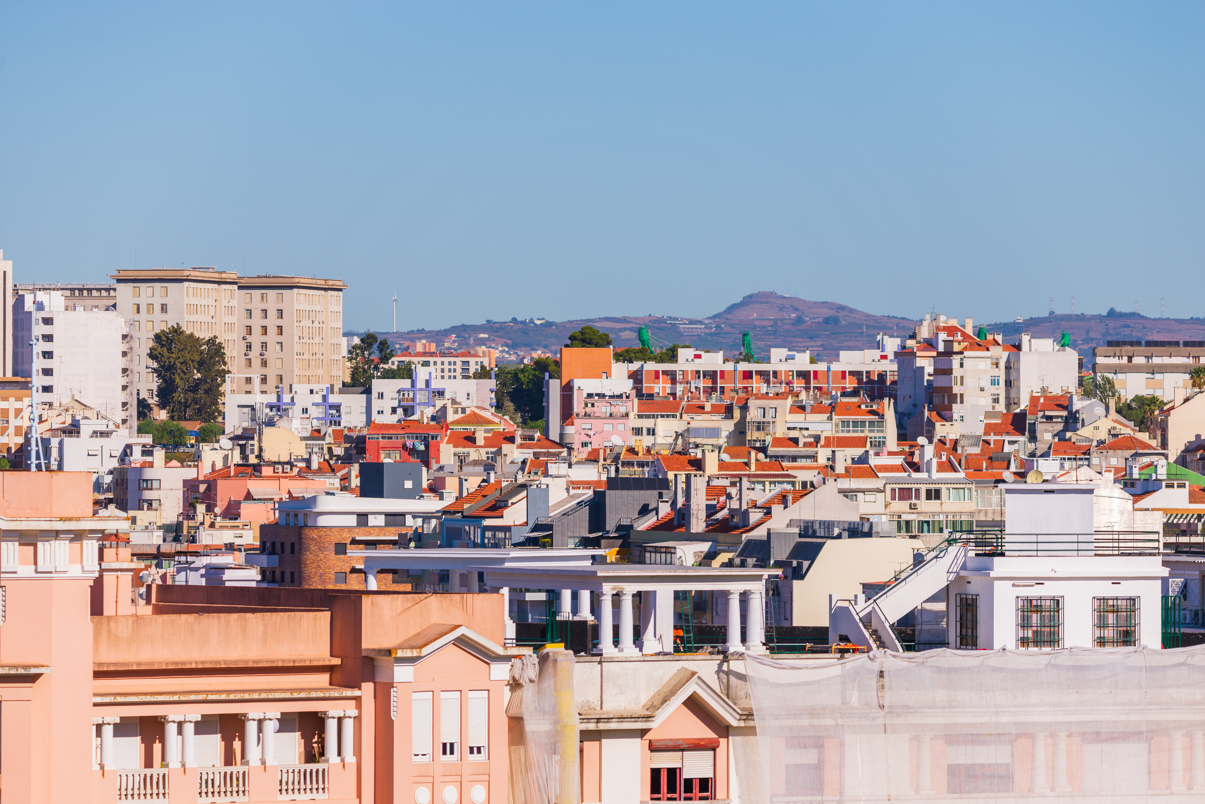 Aerial view of old town Lisbon, Portugal.