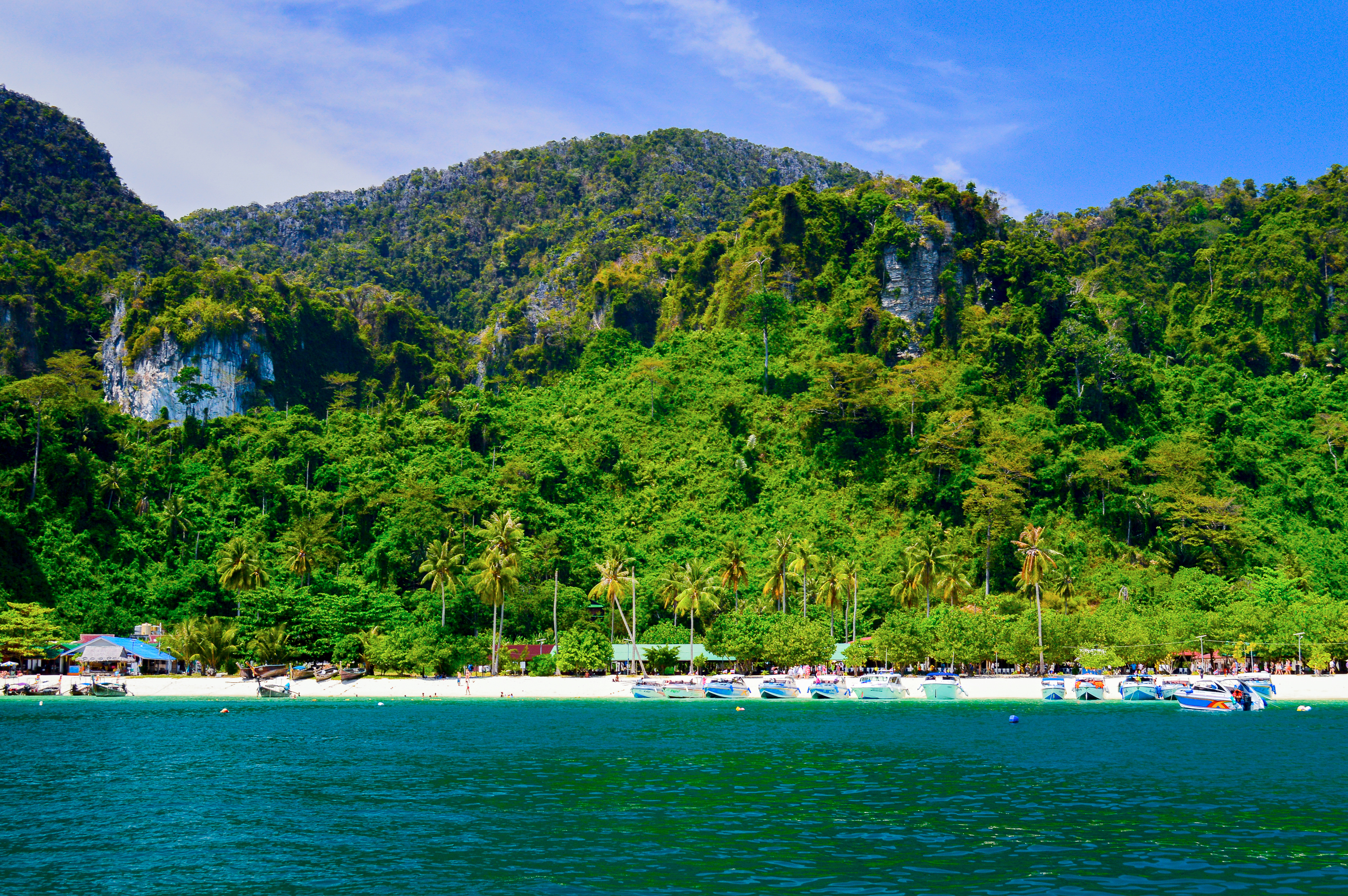 Скоростные катера на тропическом пляже в Андаманском море, Таиланд. Вид со стороны моря.