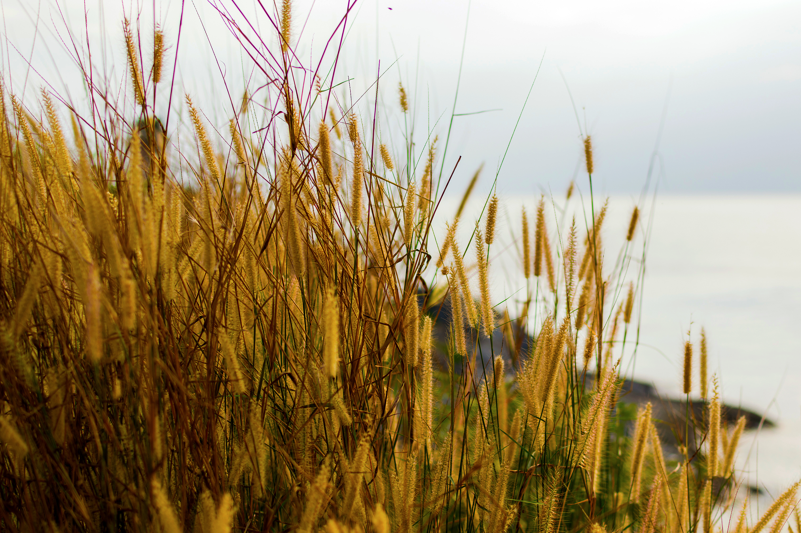 Spikelets on the coast of sea on sunset