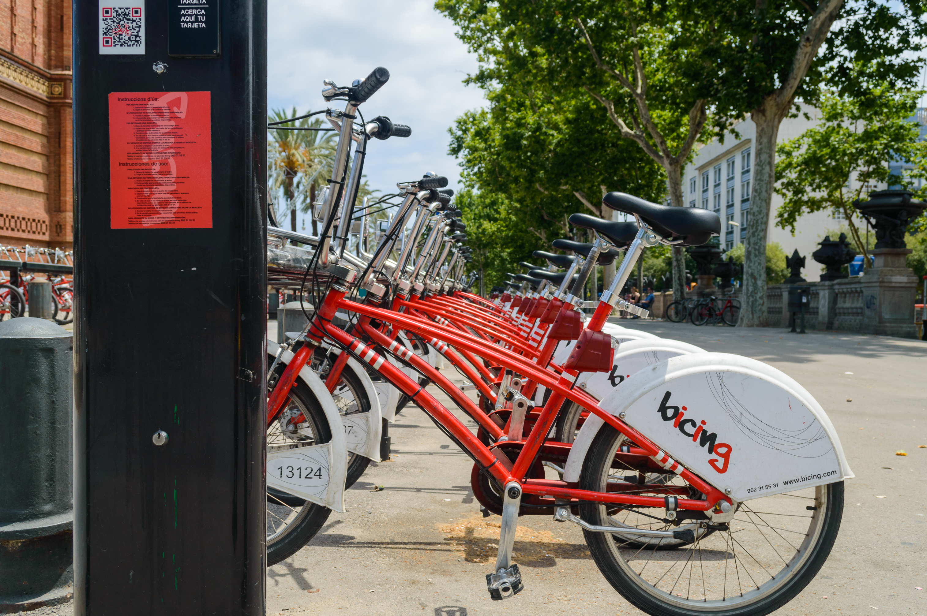 Городские велосипеды в аренду, припаркованные в Барселоне