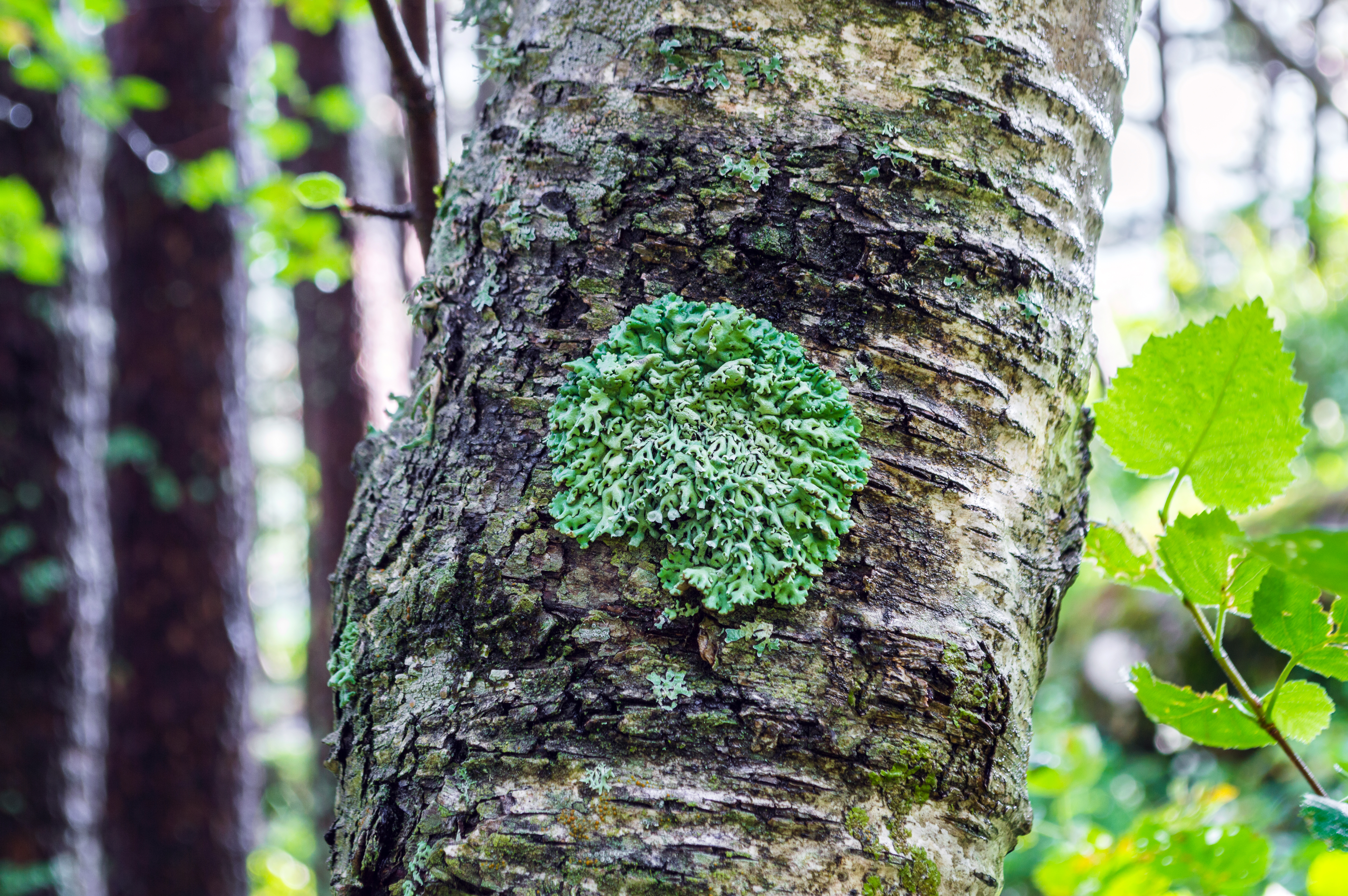 зеленый лишайник на стволе дерева