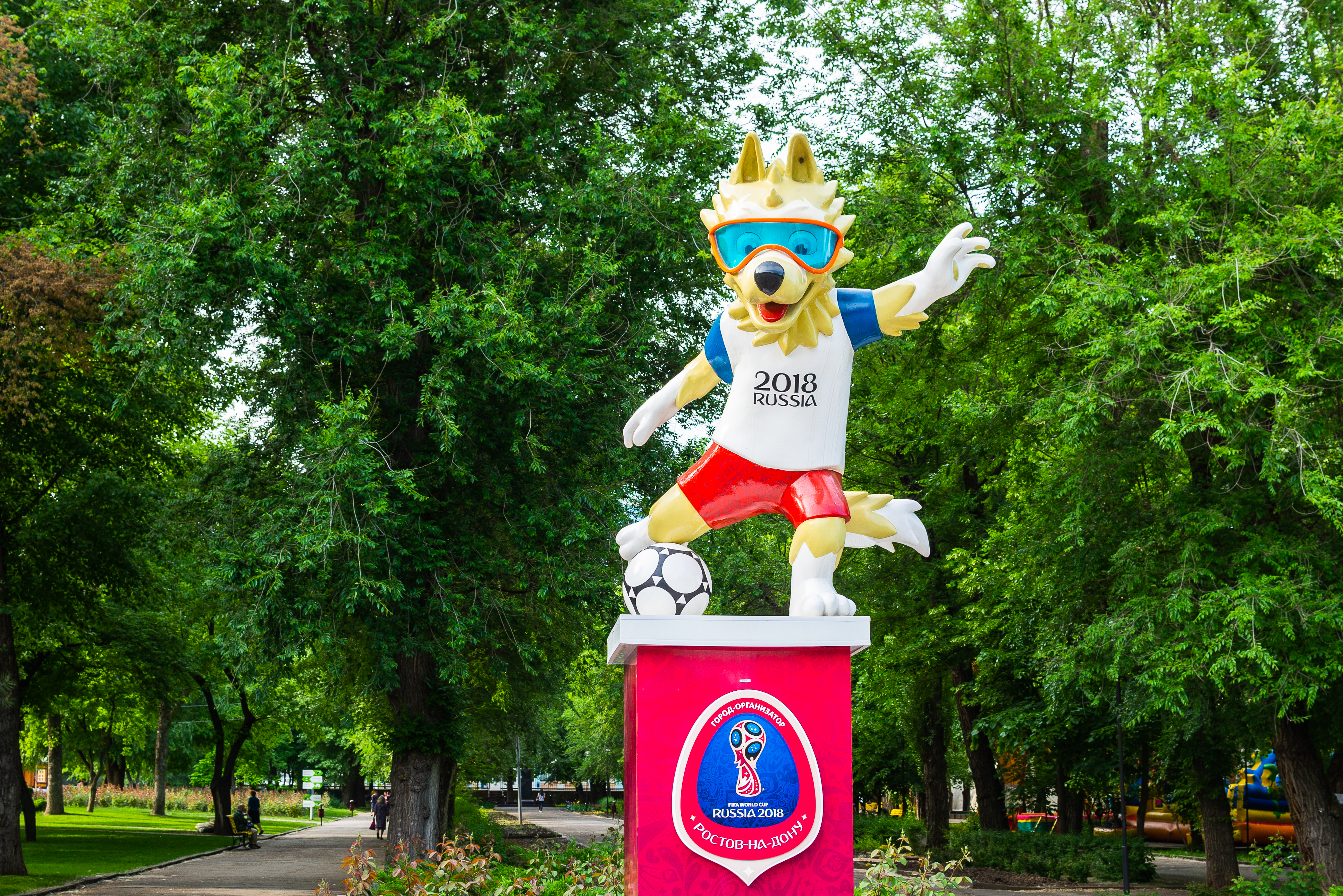 Забивака, талисман Чемпионата мира по футболу FIFA 2018, в Ростове-на-Дону