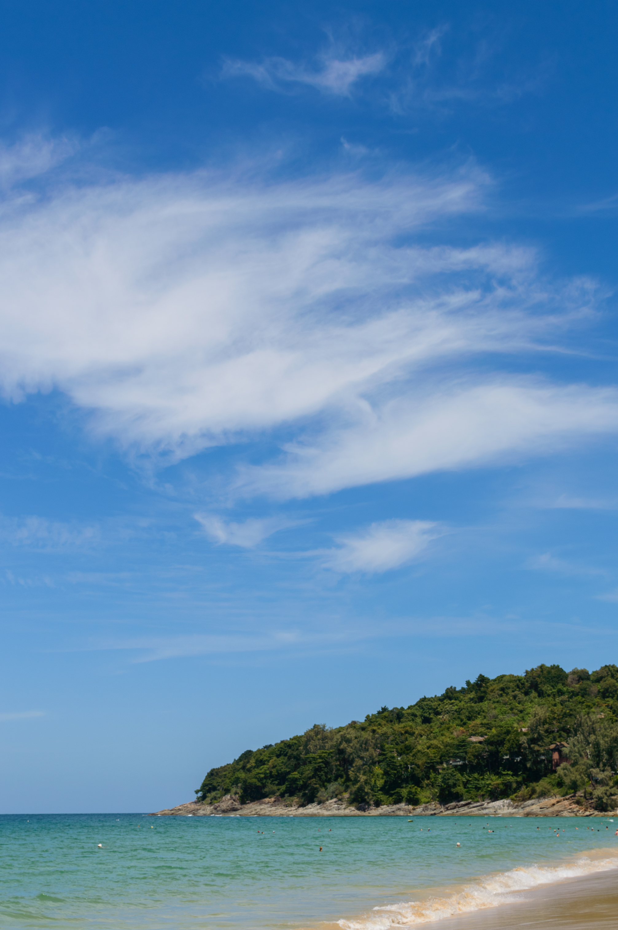 Голубое небо и спокойное море на пляже Найтон Ной в Пхукете, Таиланд.