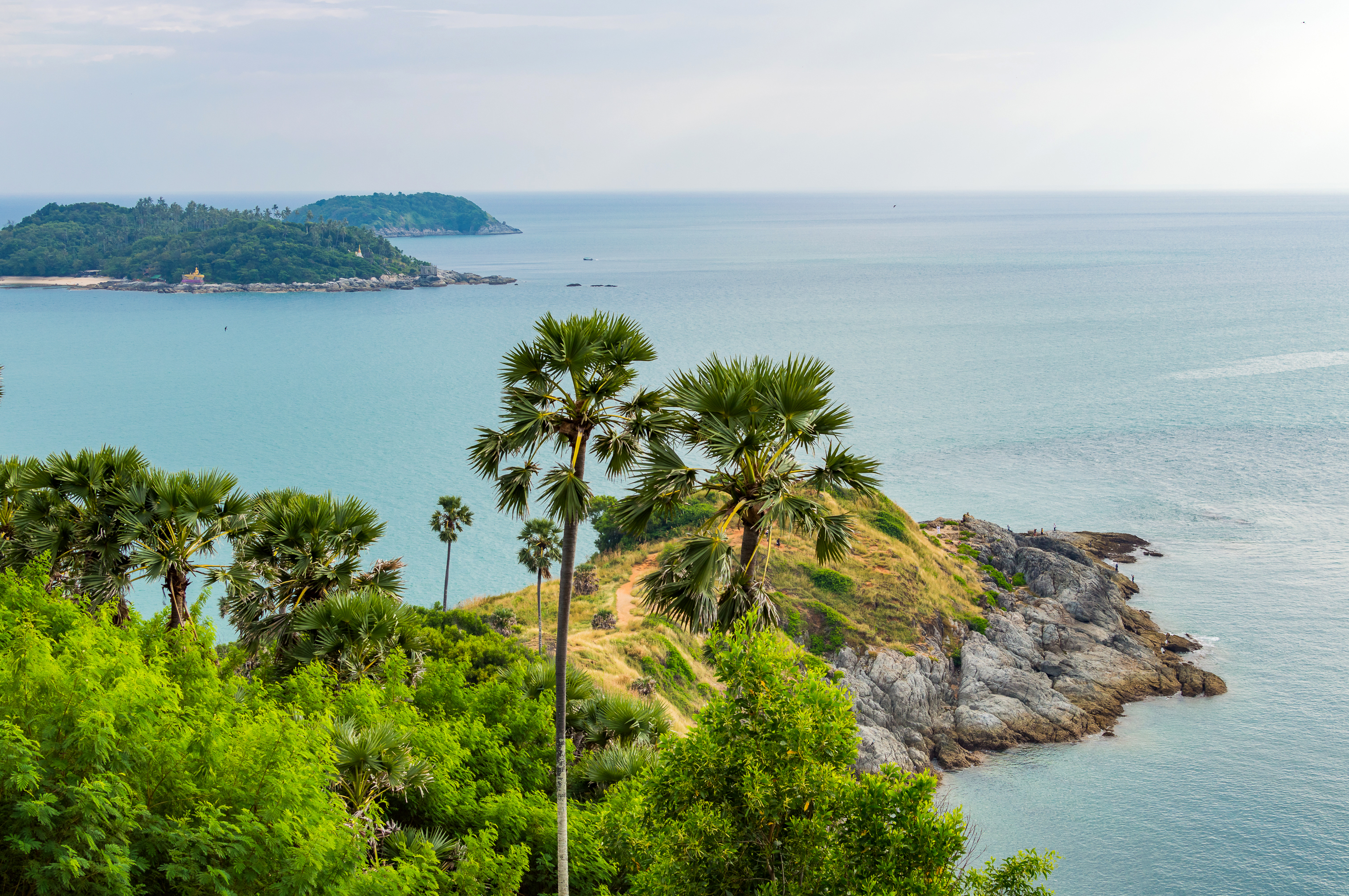 Смотровая площадка на мысе Промтеп с закатным небом на острове Пхукет, Таиланд.