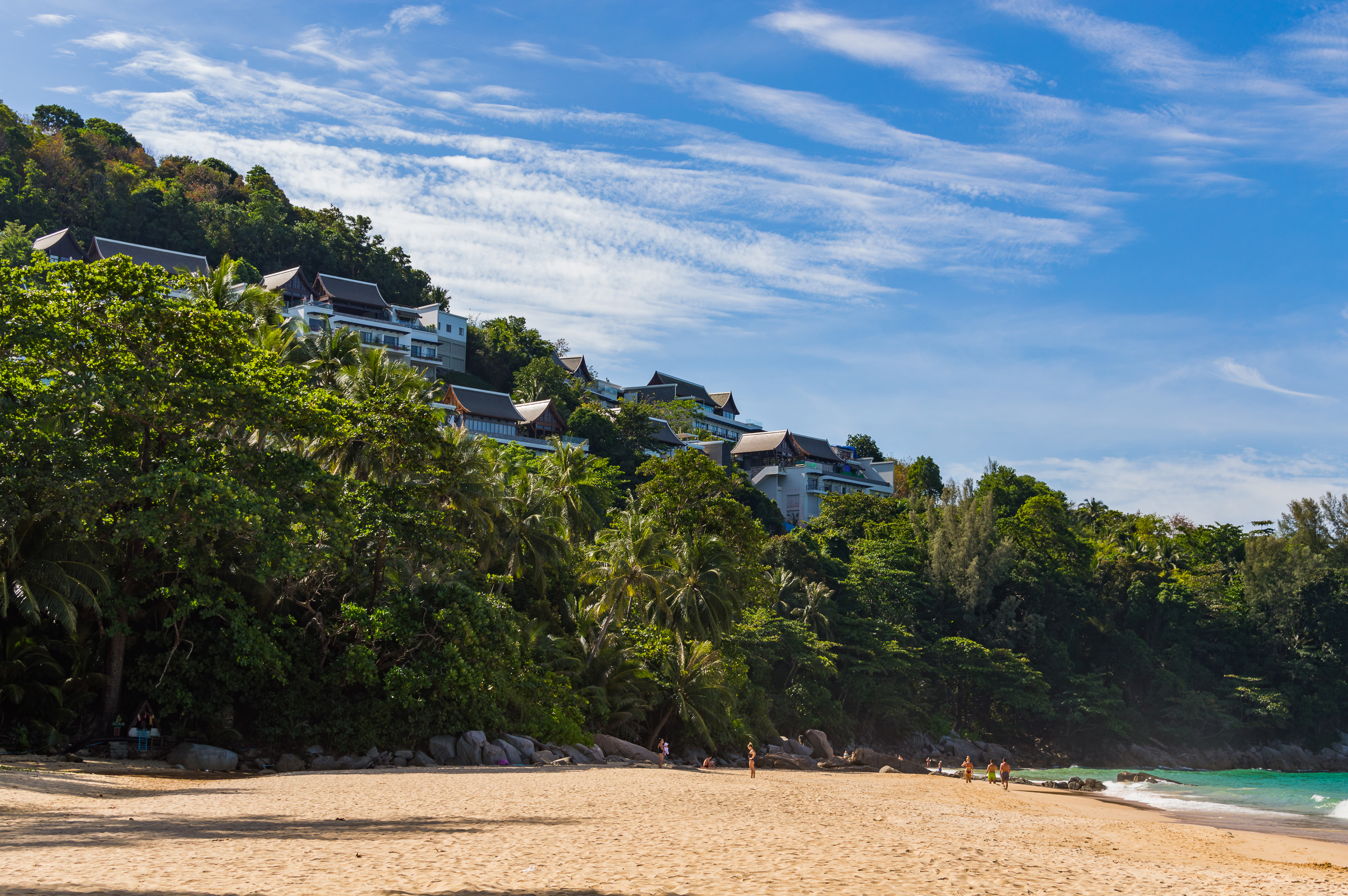 Голубое небо и спокойное море на пляже Найтон Ной в Пхукете, Таиланд.