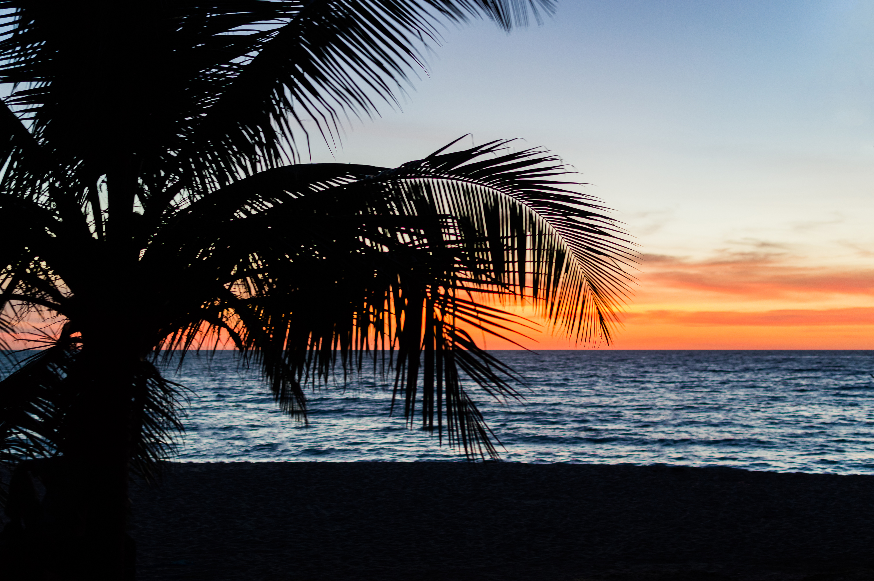 Силуэт пальм. Красочная подсветка закатного неба. Таиланд. Пхукет.