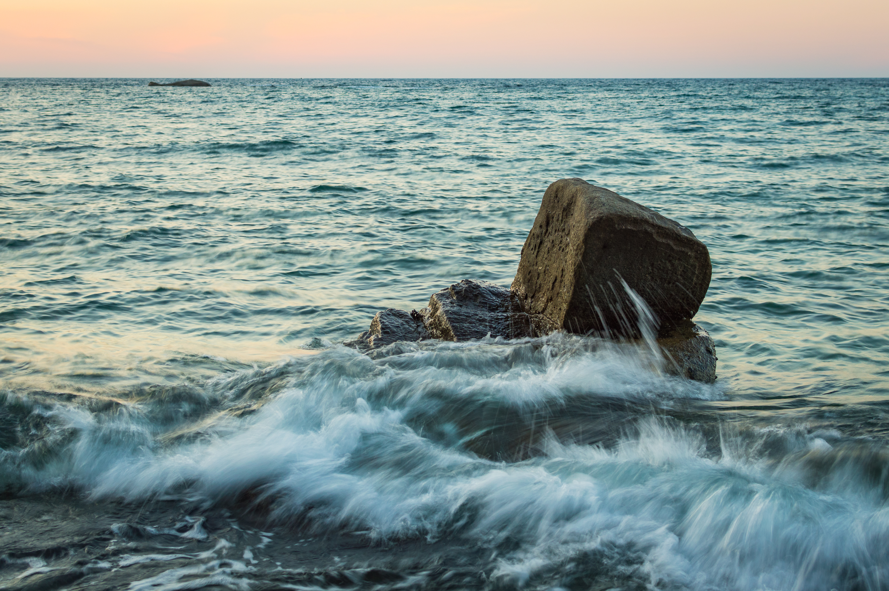 Волна плещется в море о камень